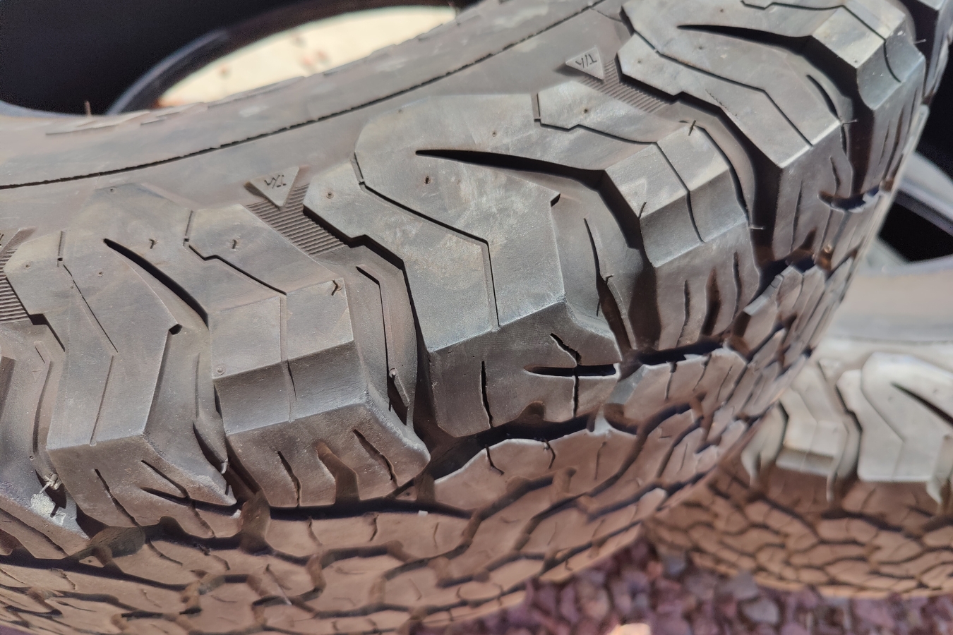 Most tires in the market these days come with tread wear indicators. Those are little rubber ribs at the bottom of your tires’ big circumferential tread grooves. When enough of the tread wears away, the treadwear indicators, often called tread bars, become visible and stand out. The idea is that when you can see the tread bars, it is time to replace your tires because they are at the very bottom of safe tread depth.