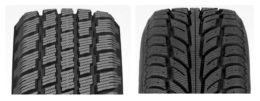For grip on snow and ice, the Cooper Weather-Master tires and the Cooper Discoverer M+S tires have a very high density of sipes in the tread. These small grooves in the tread blocks provide the biting edges needed for snow traction and grip on ice. All Cooper winter tires also have deep circumferential grooves, which help channel water and slush out from under the tread to prevent hydroplaning.