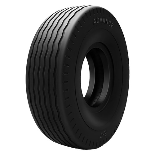 The Advance E-7 series tire is a bias OTR (Off-The-Road) earthmover tire, well-suited for soft, sandy, and asphalt terrains. Its rib tread design provides improved steering constancy and reliable side traction. The low tread depth is engineered for effective heat dissipation, contributing to long wear. This flotation tire offers dependable performance for heavy equipment.