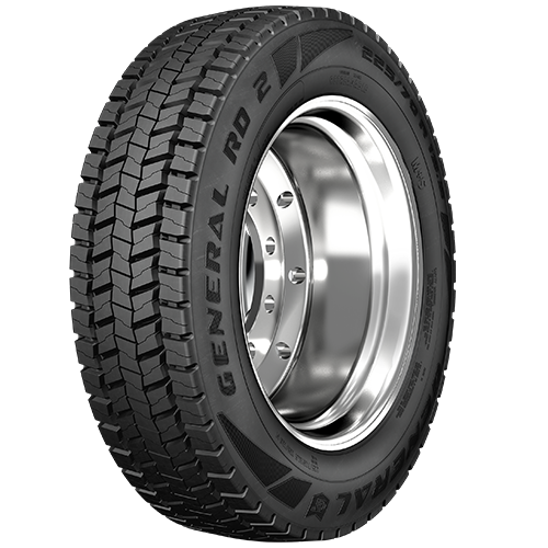 The General RD 2 is a commercial drive axle tire built for traction, durability, and long service in regional and highway work. An optimized tread void ratio improves contact in wet conditions. Stability ribs and optimized contact pressure help resist irregular wear. Strong bead construction and reinforced plies deliver stability with heavy payloads. Cut and chip resistant materials help the tire withstand rough surfaces. The tread profile is tuned for smooth, predictable handling on pavement. It is a practical choice for operators who need steady performance and predictable costs. This design balances traction, durability, and ride quality for dependable use over thousands of miles.