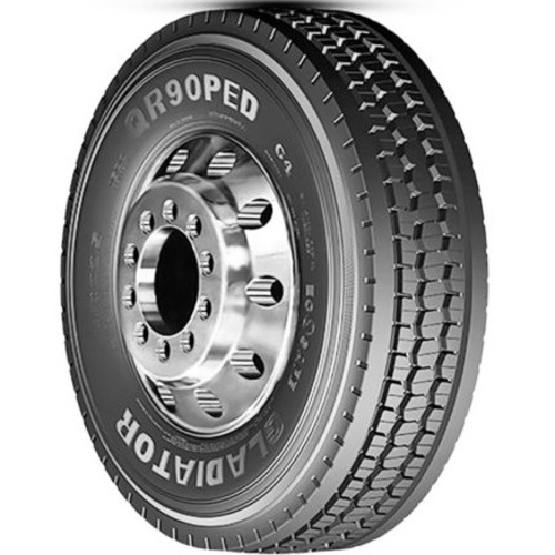 The Gladiator QR90PED is a commercial truck tire designed for drive axles in on-highway applications. This steel-belted radial tire features a closed shoulder design to resist uneven wear, contributing to a longer tread life. Built for durability and reliability, the QR90PED delivers consistent performance for trucks and buses.