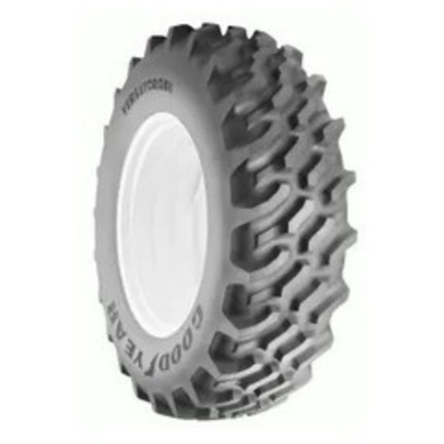 The Goodyear Versa Torque R-1 is an agricultural radial tire designed for rear tractor drive wheels in general farm service. Its bi-directional design and multiple lug pattern provide a significant increase in traction edges, offering excellent grip. The high center contact area tread pattern delivers a smooth ride and responsive handling, while deep, wide grooves promote self-cleaning in soft or wet soil. This tire features a thick, damage-resistant casing for enhanced durability and reliability in demanding agricultural applications.
