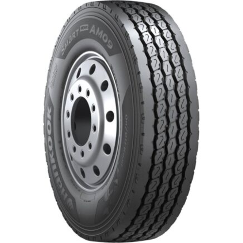 The Hankook AM09 is an all-position, all-season tire designed for commercial vehicles. Its aggressive groove design and polygonal blocks provide toughness on gravel and stability on the road. Features include zigzag grooves and an optimized sipe design for improved traction and braking, plus a wide tread for enhanced handling performance and increased tread life. Provides superior handling and traction, even on wet and muddy surfaces.
