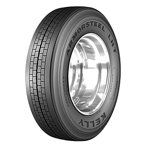 The Kelly Armorsteel LHT is a durable commercial truck tire designed for long-haul trailer applications. This highway terrain tire delivers excellent fuel efficiency and long tread life, verified by SmartWay. The Armorsteel LHT features a decoupling groove to promote even wear and a four-belt construction for enhanced durability, providing exceptional retreadability. The mono-groove tread pattern contributes to extended service life and even wear.