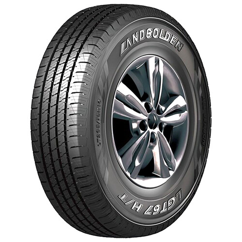 Landgolden LGT67 H/T is a highway terrain all-season tire designed for SUVs and light trucks. This tire provides great on-road performance by having the interlock sipe design on its three center ribs that reduce the noise and improve stability and gripping ability. Five frequency block arrangement of computer-optimized design contribute towards reducing the road noise, while interlocking siping detail with ribbed tread design offers the gripping ability for challenging road conditions. Its zig-zag sipe design help to improve off-road performance as the design of the symmetrical grooves proved to show excellent sand ejecting performance and impressive handling. LGT67 H/T’s notch and lateral groove detail create friction while braking and help to shorten the braking distance. Its four circumferential grooves help to effectively evacuate water and slush away from the tire’s footprint, which also helps to reduce the risk of hydroplaning.