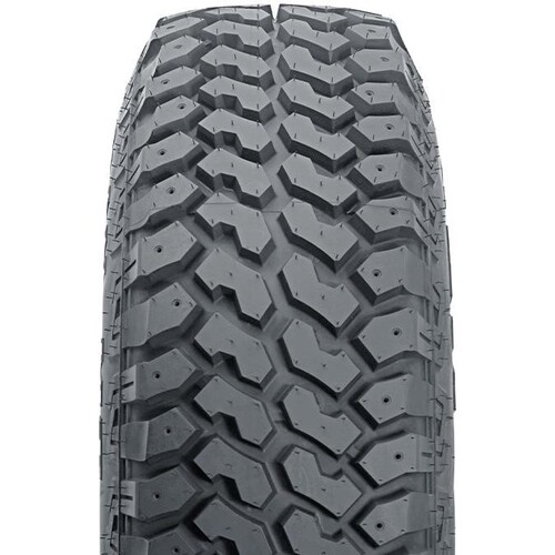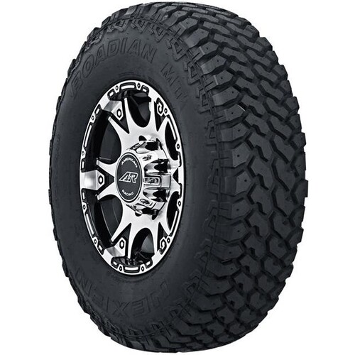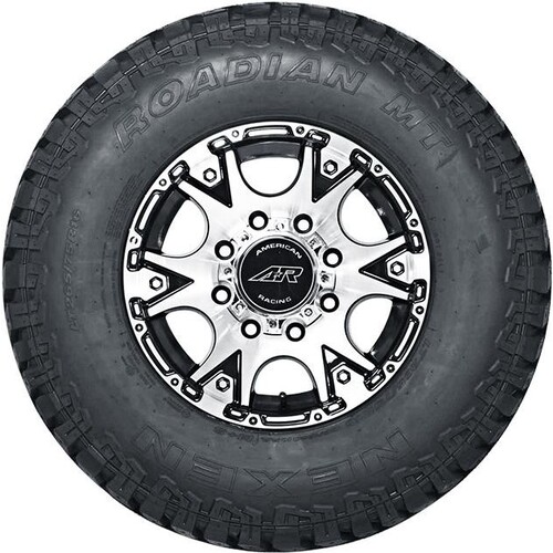 The Nexen Roadian MT tire is a mud terrain tire for pick-up trucks and Jeeps. It is designed to combat mud and rough terrain with deep grooves, large tread blocks and an open shoulder design. All this traction comes on a tire casing designed for extra heavy loads and strength. The zig-zag siping on the shoulder blocks coupled with the wide grooves give this tire plenty of pulling power in mud and sand, as well as good anti-hydroplaning performance and superior water drainage on wet city streets and flooded highways. The tire will deliver long-mileage if rotated every 6 months, which will also ensure a quieter ride on the highway due to even tread-wear.