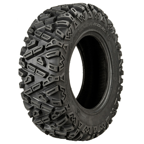 The OTR Wizzard R2 is an all-terrain, all-season tire designed for ATVs and UTVs. A variation of the popular Wizzard model, the R2 features distinctive 'W' shaped shoulder lugs and mud breakers for exceptional grip. Its heavy-duty radial construction enhances durability and load capacity. This tire provides enhanced controllability and all-terrain traction, making it suitable for recreational and racing side-by-side vehicles.