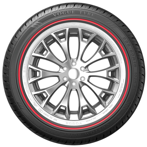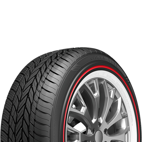 Make a statement with the Vogue Custom Built Radial Red Stripe tire. This eye-catching tire combines classic style with dependable all-season performance. Its distinctive red sidewall design adds a touch of luxury to any vehicle, while the robust construction ensures a comfortable, quiet, and reliable ride. Perfect for passenger cars, the Vogue Custom Built Radial Red Stripe delivers a balance of performance and aesthetic appeal. Experience the difference of a tire that looks as good as it performs.