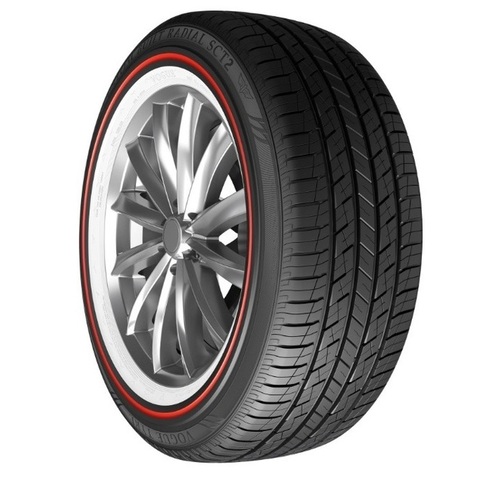 Experience the unique style and reliable all-season performance of the Vogue Custom Built Radial SCT2 Red Stripe tire. Designed for SUVs, crossovers, and trucks, this tire delivers a comfortable, quiet ride thanks to its sloping tread elements. The advanced silica tread compound provides confident handling in various weather conditions, including wet and snowy roads. Enjoy enhanced wear and lasting quality with Vogue Tyre's industry-leading craftsmanship. Benefit from dependable all-season performance and a touch of distinctive style.